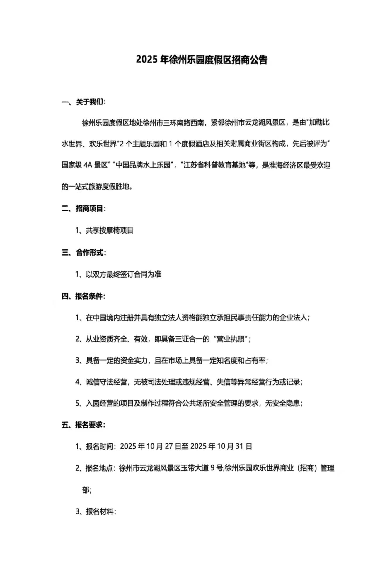 徐州乐园主通道泳衣零售车招商项目招标公告